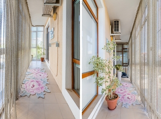 Два просторных, светлых и стильных балкона с панорамными окнами и элементами дизайна.